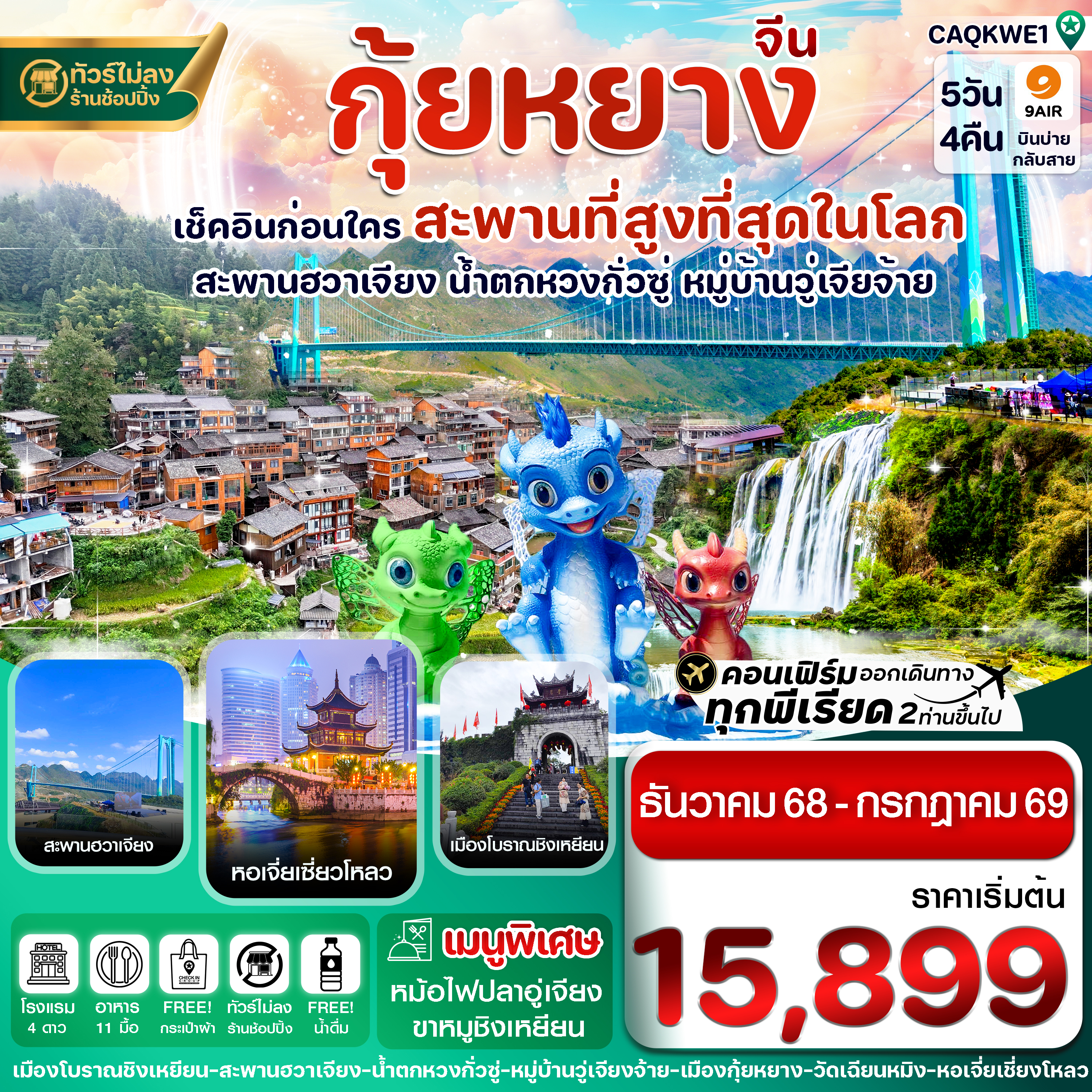 CAQKWE1 กุ้ยหยาง สะพานฮวาเจียง น้ำตกหวงกั่วซู่ 5 วัน 4 คืน บิน 9AIR (DEC25-JUL26)