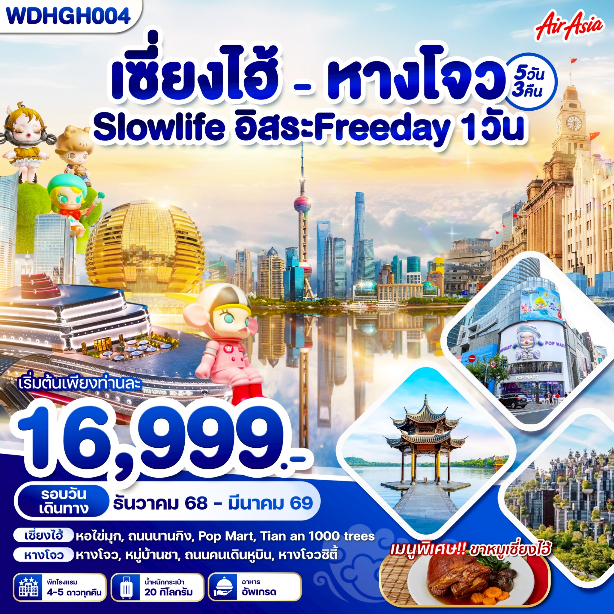 WDHGH004 เซี่ยงไฮ้ หางโจว ฟรีอิสระ1วัน 5วัน4คืน บิน FD